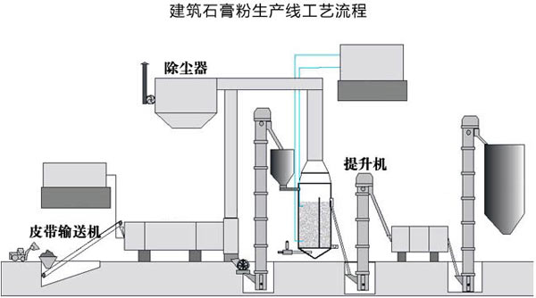 除尘系统是石膏生产线中不可以或缺的设备,由于被磨的原料中含有水份,并在研磨过程中蒸发变为气体,导致循环风路中的风量增加,此项增加的风量,从大旋风收集器和鼓风机之间的管道引入袋式除尘器,除去空气中的粉尘,然后排到环境中,确保环境清洁。