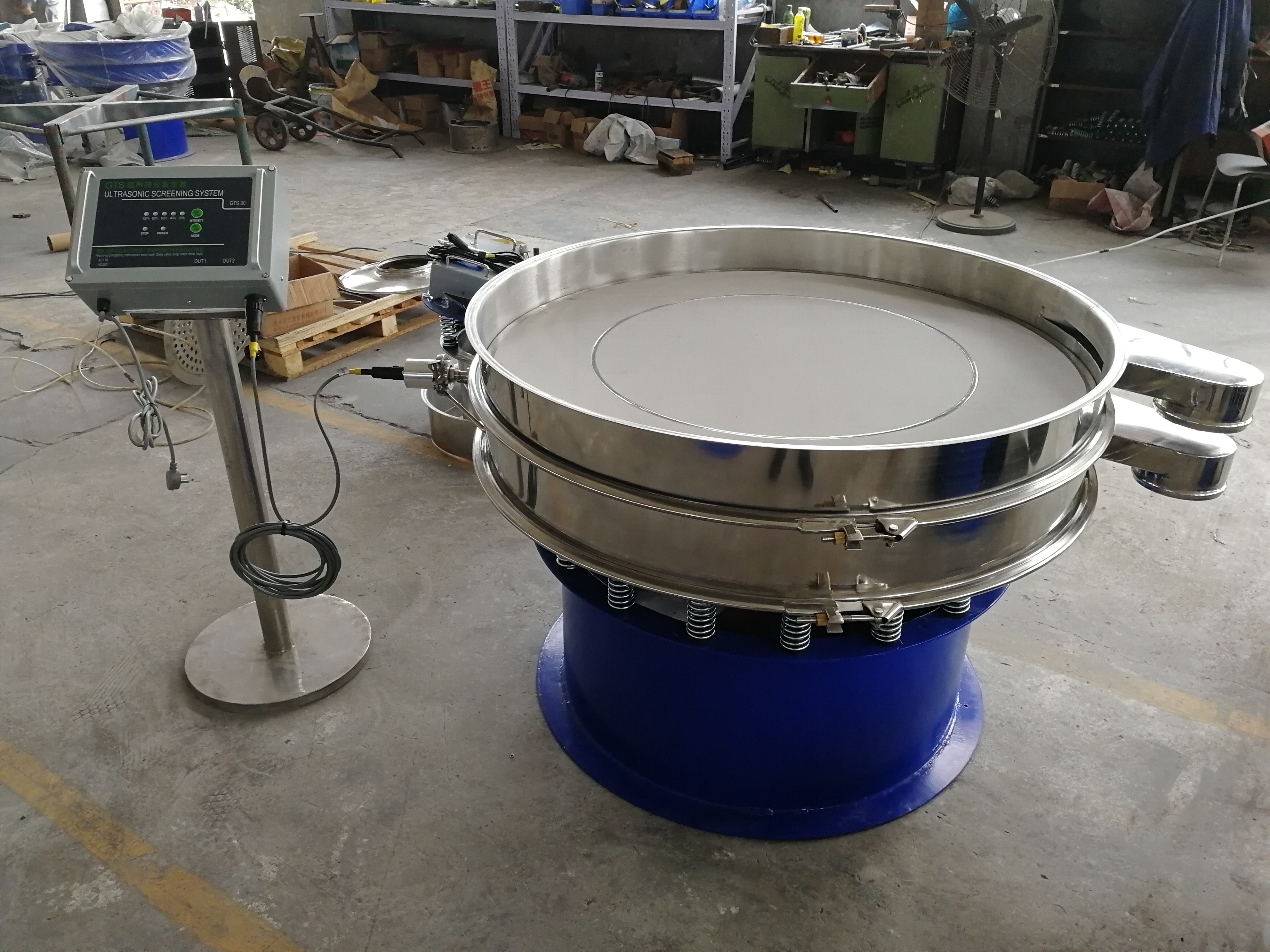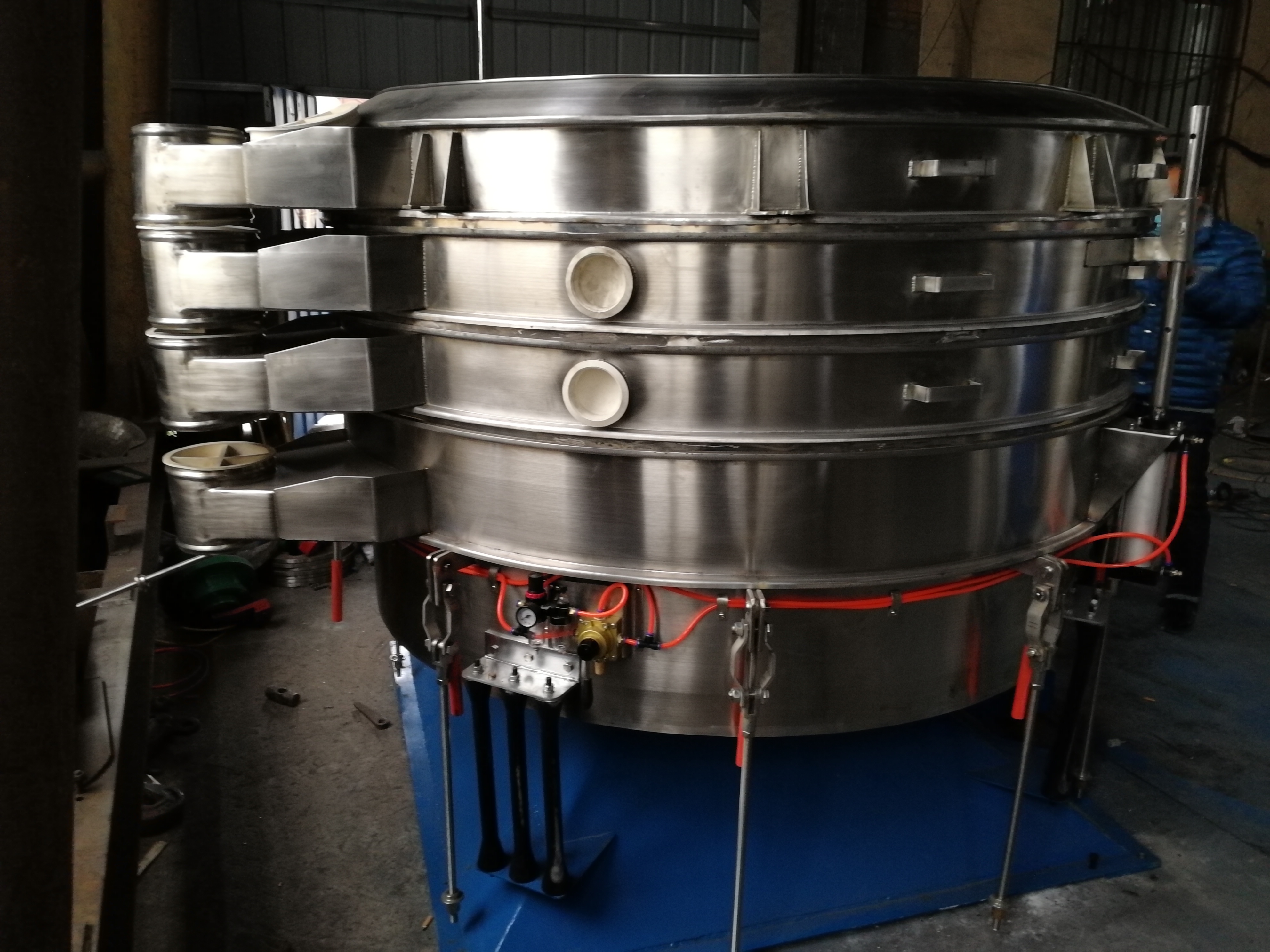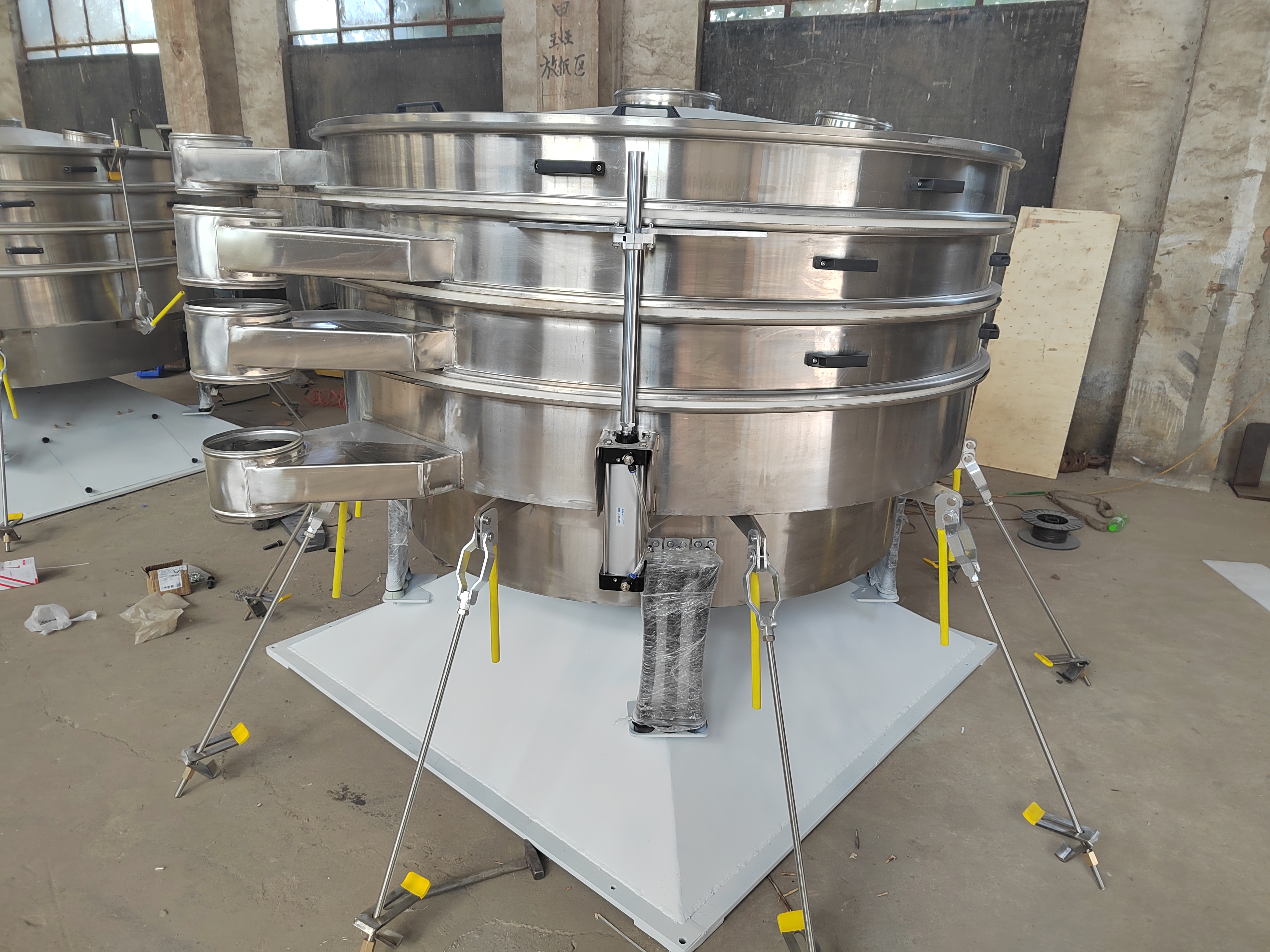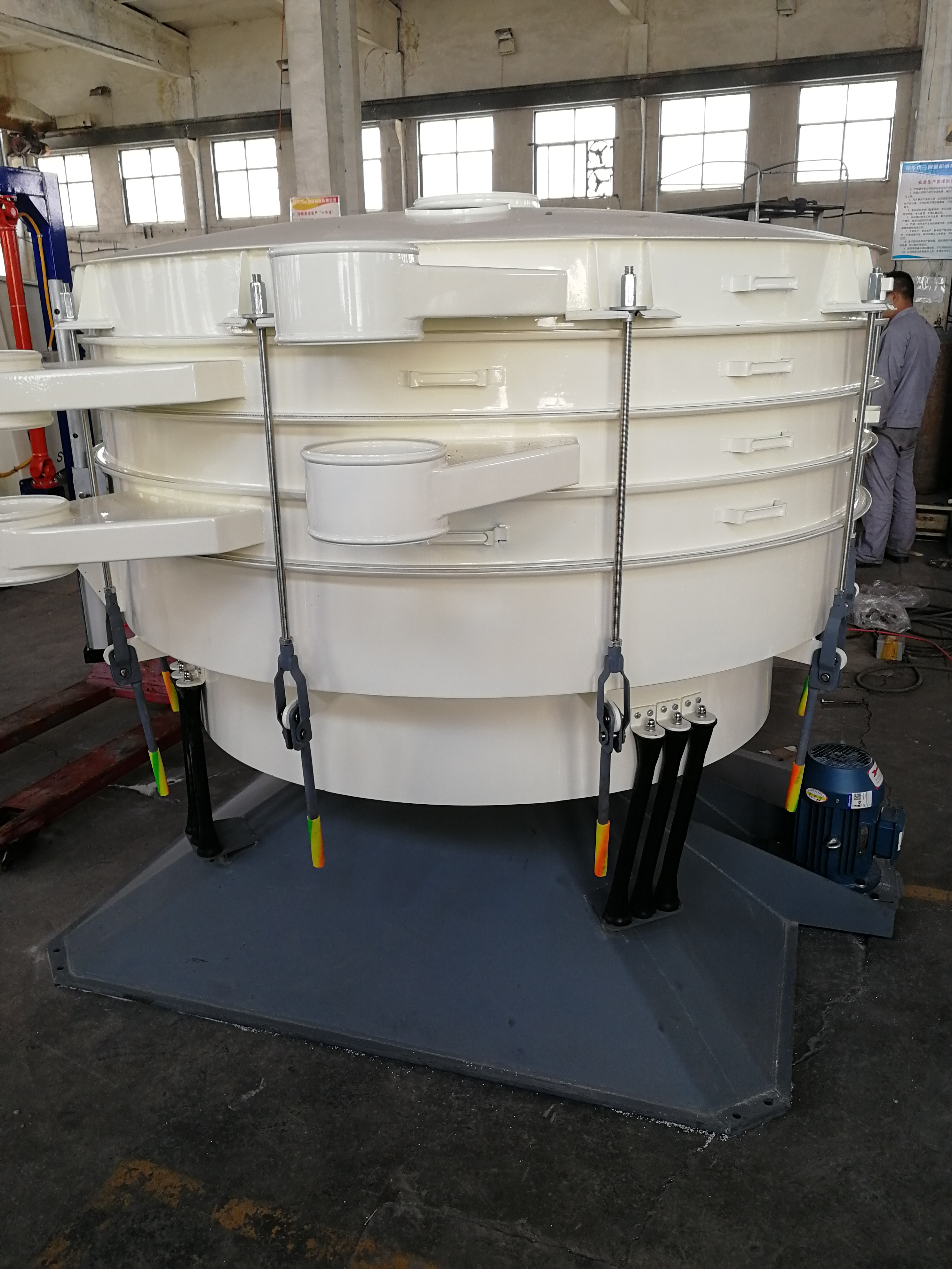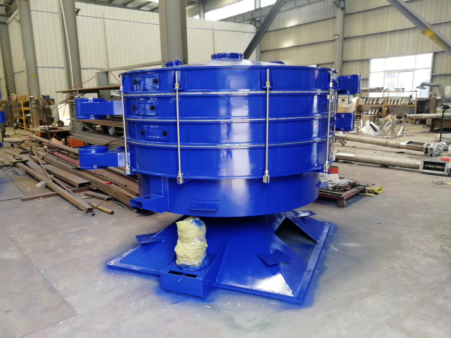 过滤筛是一种用于浆液过滤的筛分机,由振动器、矿浆分配器、筛框架、悬架弹簧、筛网等部件组成。结构可靠。振动力。筛分效率高。振动噪音低。坚固耐用。维护方便。过滤筛广泛应用于矿山、建材、交通、能源、化工等行业。陶瓷浆料,釉料行业使用。 过滤筛采用高频,利用气缸偏心轴振动器和偏块调节振幅,加速了大密度有用的矿物和分离效果,增加了小于分离粒度的材料与筛孔接触的概率。因此,它导致了良好的分离条件,使小于分离粒度的材料成为大比例的材料。所需驱动功率小,启动时启动电流小,噪音低;具有效率高、振幅小、筛分频率